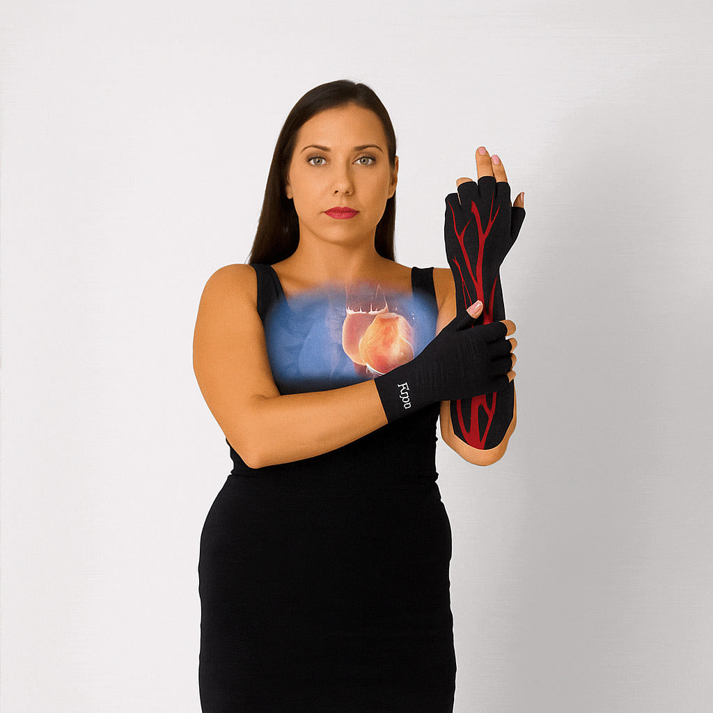 Los guantes Grip estimulan el flujo sanguíneo gracias a su compresión terapéutica y micro partículas de cobre.